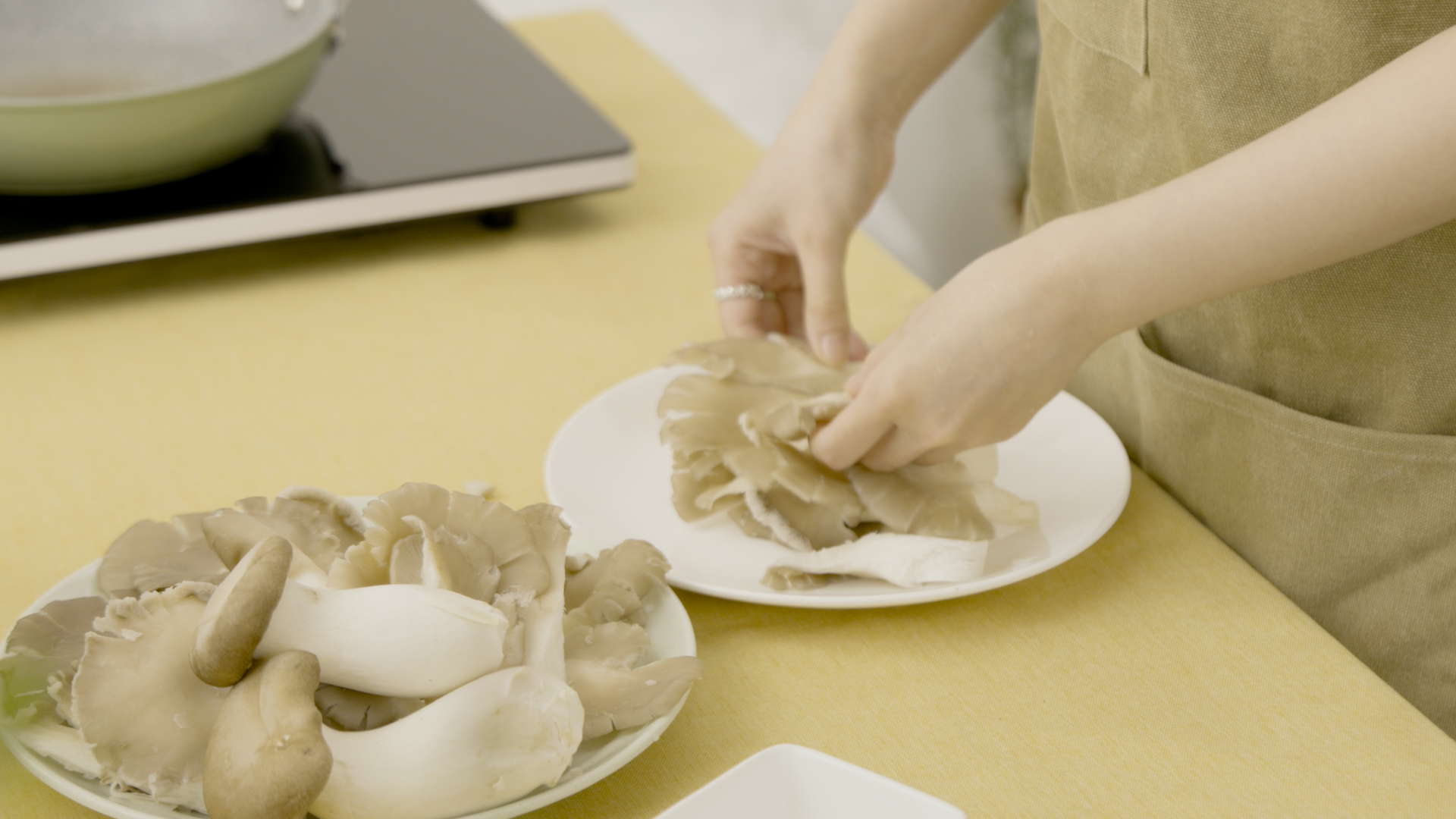 Bắt tay vào làm với nấm bào ngư trước, cách chọn nấm ngon cho món này thì cả nhà đừng chọn nấm quá to, vừa nhỏ thôi là được, vì mình còn phải rửa sạch và xé đôi những cái nấm to ra.