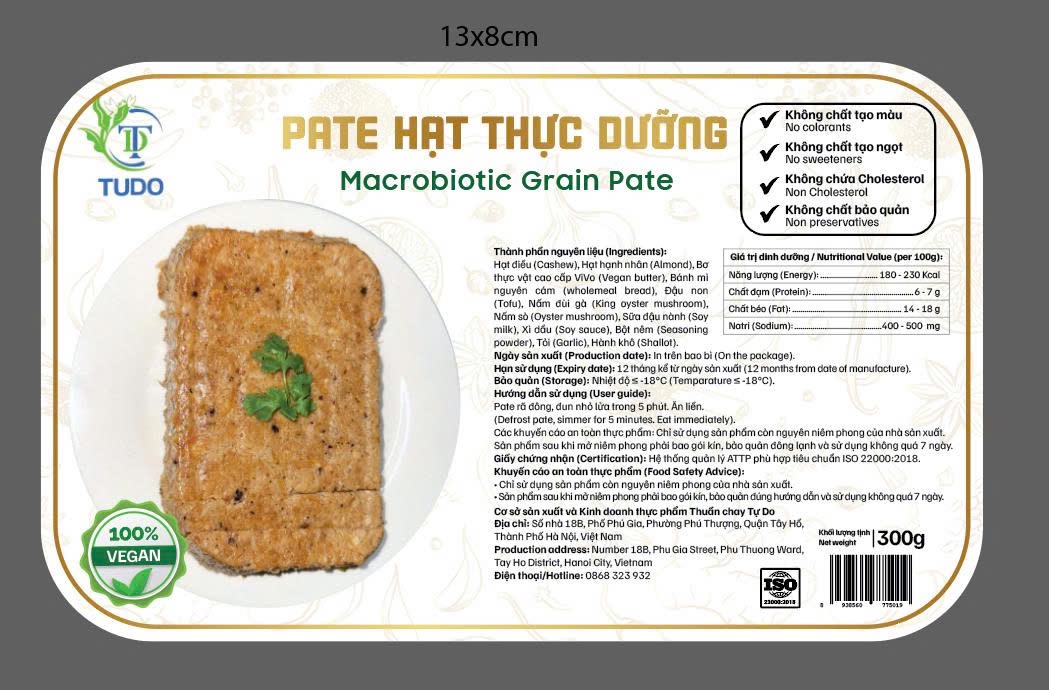 Cơ sở sản xuất và Kinh doanh thực phẩm Thuần chay TuDo Địa chỉ: Số 18B, Phố Phú Gia, Phường Phú Thượng, Quận Tây Hồ, Thành phố Hà Nội, Việt Nam Hotline: 0868 323 932